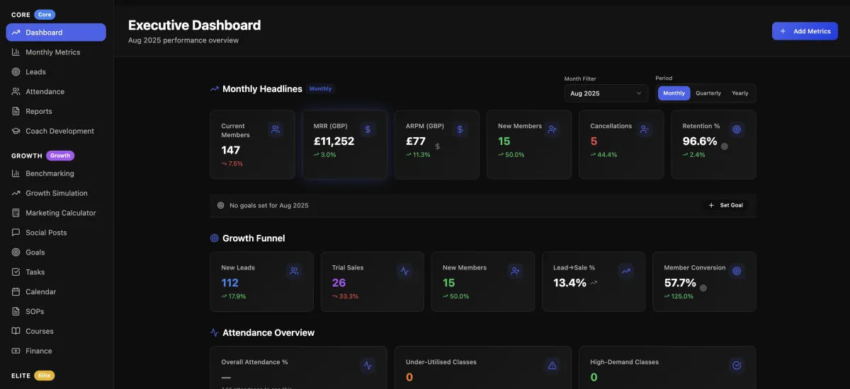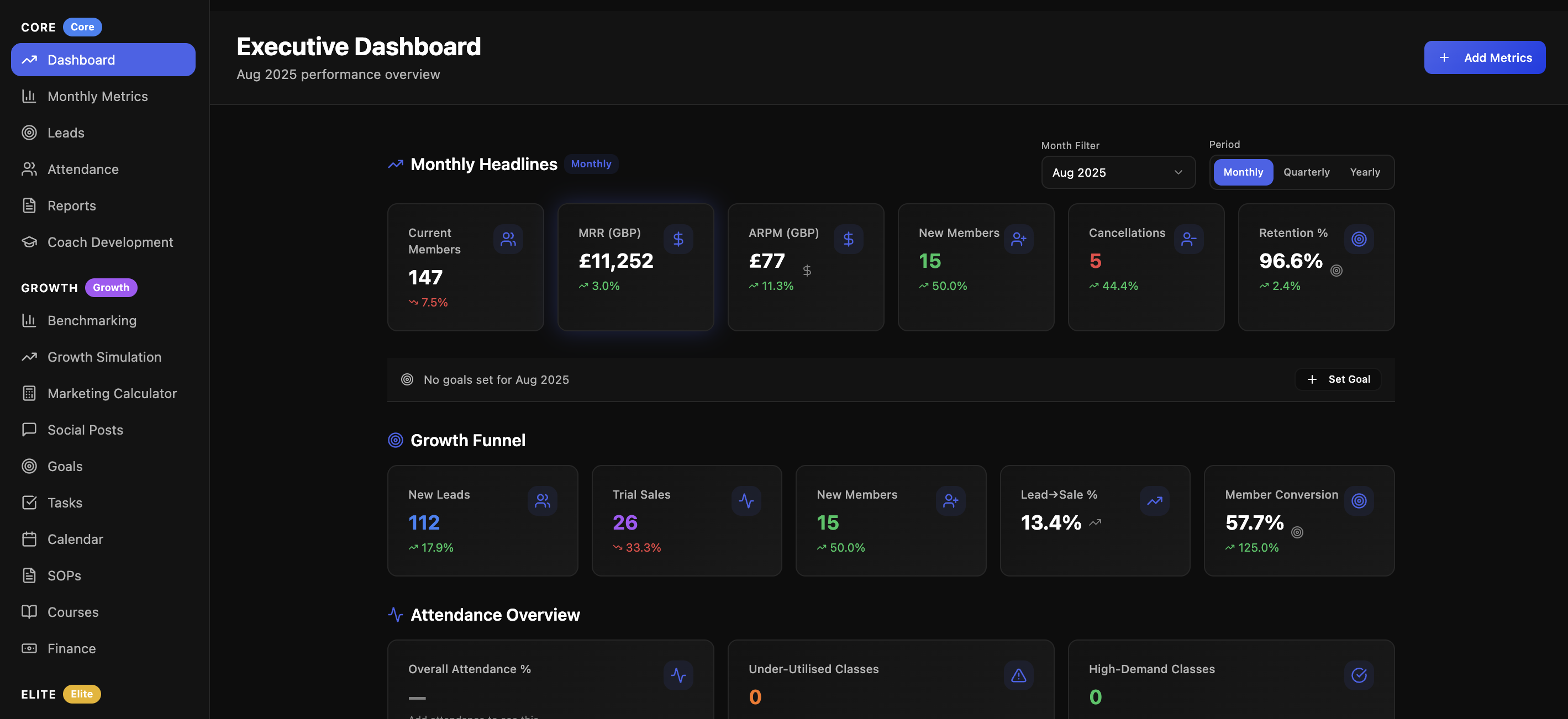 The Sprint is built for independent gyms, CrossFit boxes, and functional fitness studios — anyone who wants clear visibility on growth, retention, and revenue.